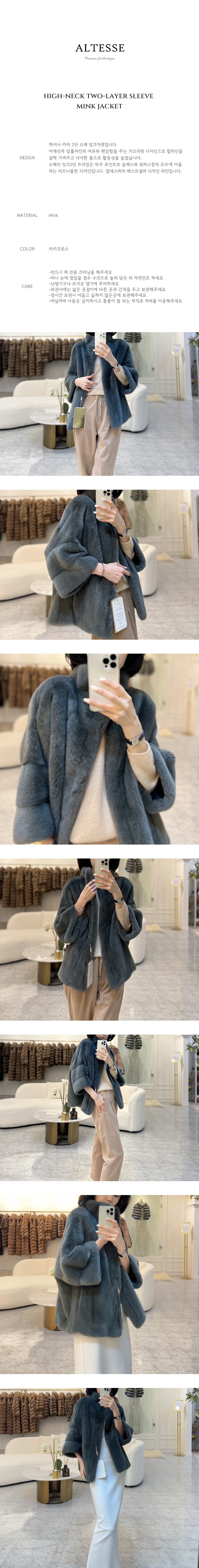 High-Neck Two-Layer Sleeve Mink Jacket / C75